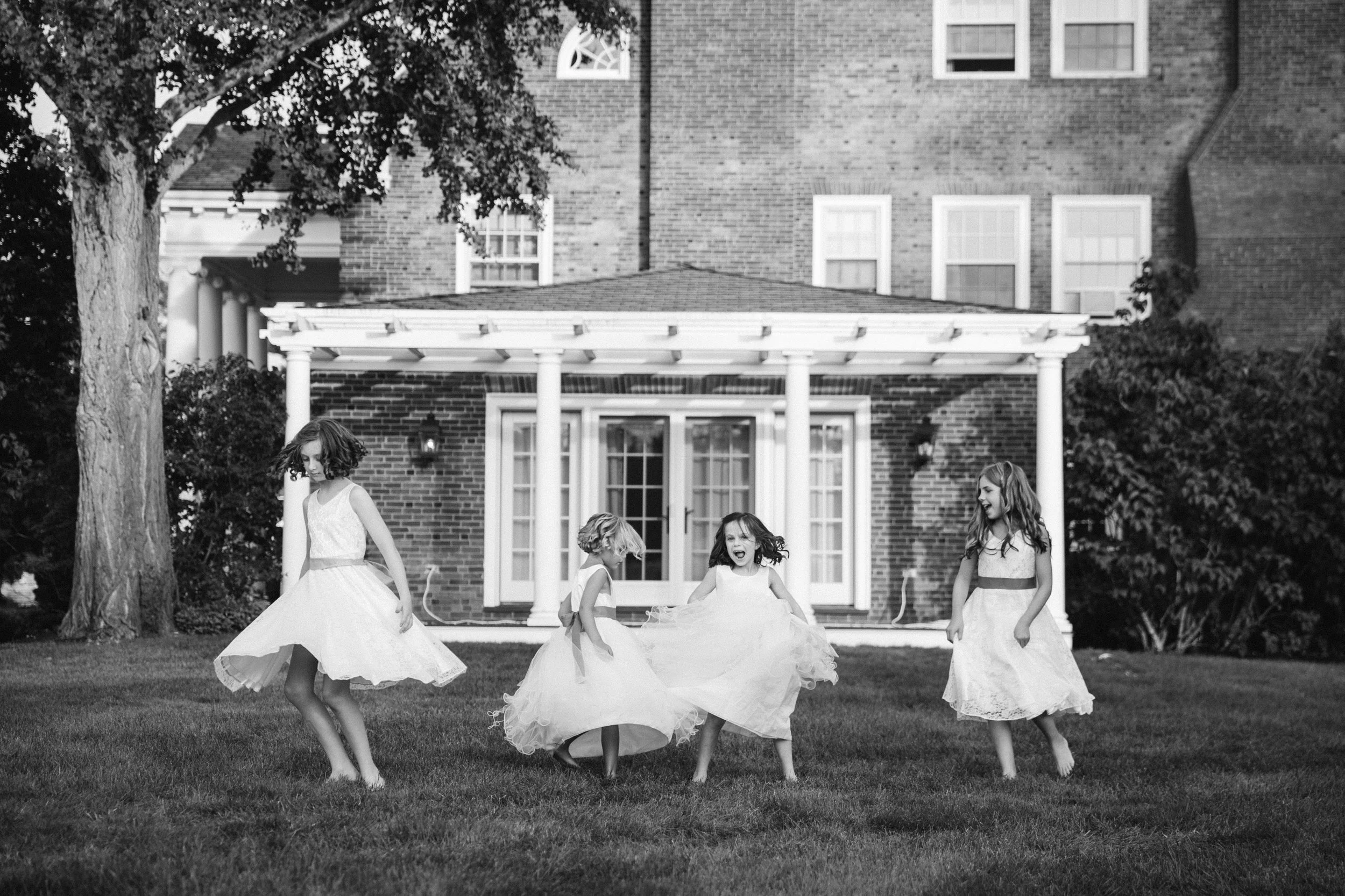 Guests enjoyed cocktail hour by the tent while nieces and nephews frolicked on the expansive lawn.