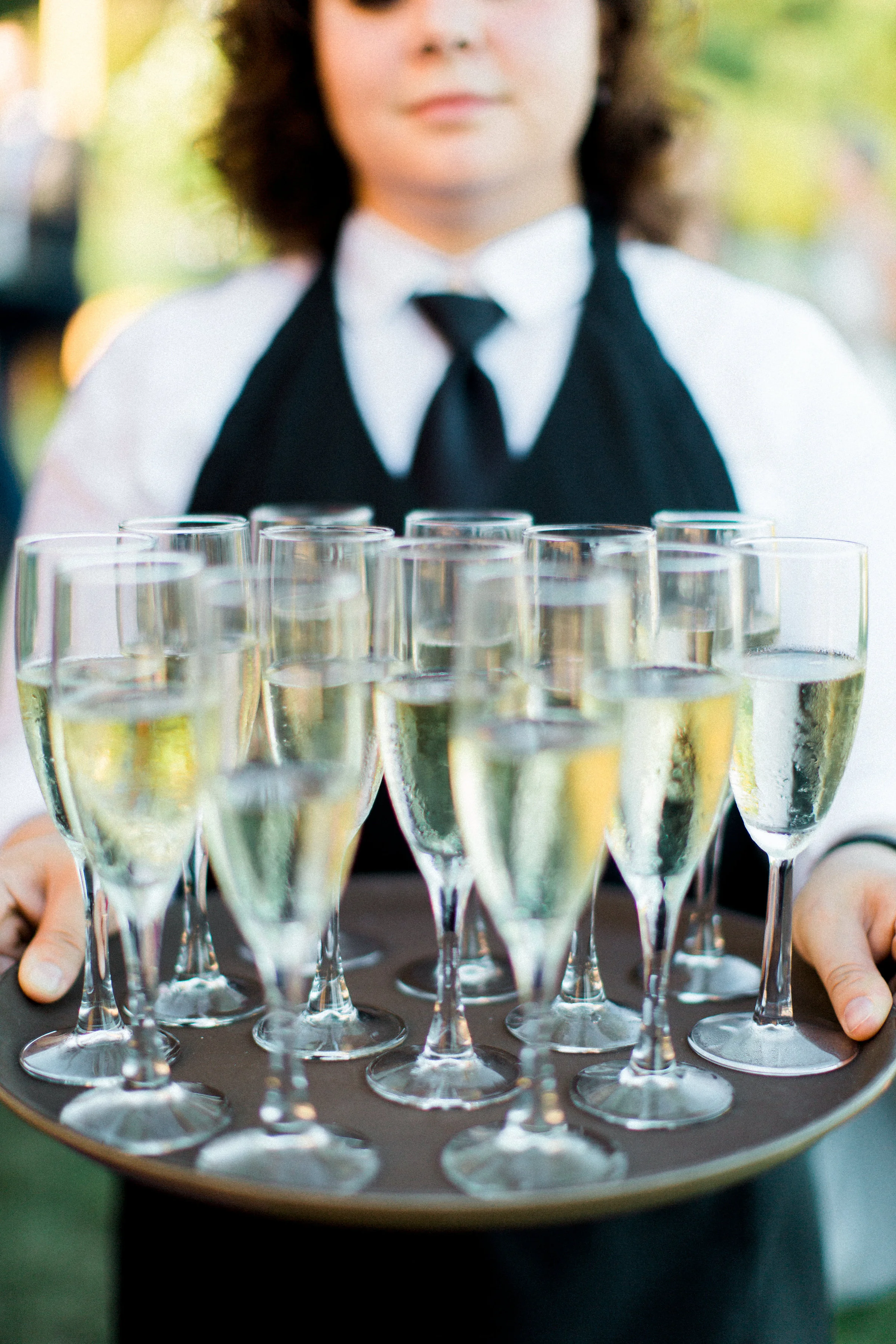 To encourage movement and provide a casual vibe, vignettes of lounge furniture, food stations and cocktail tables spilled out onto the the lawn beneath strings of cafe lights.